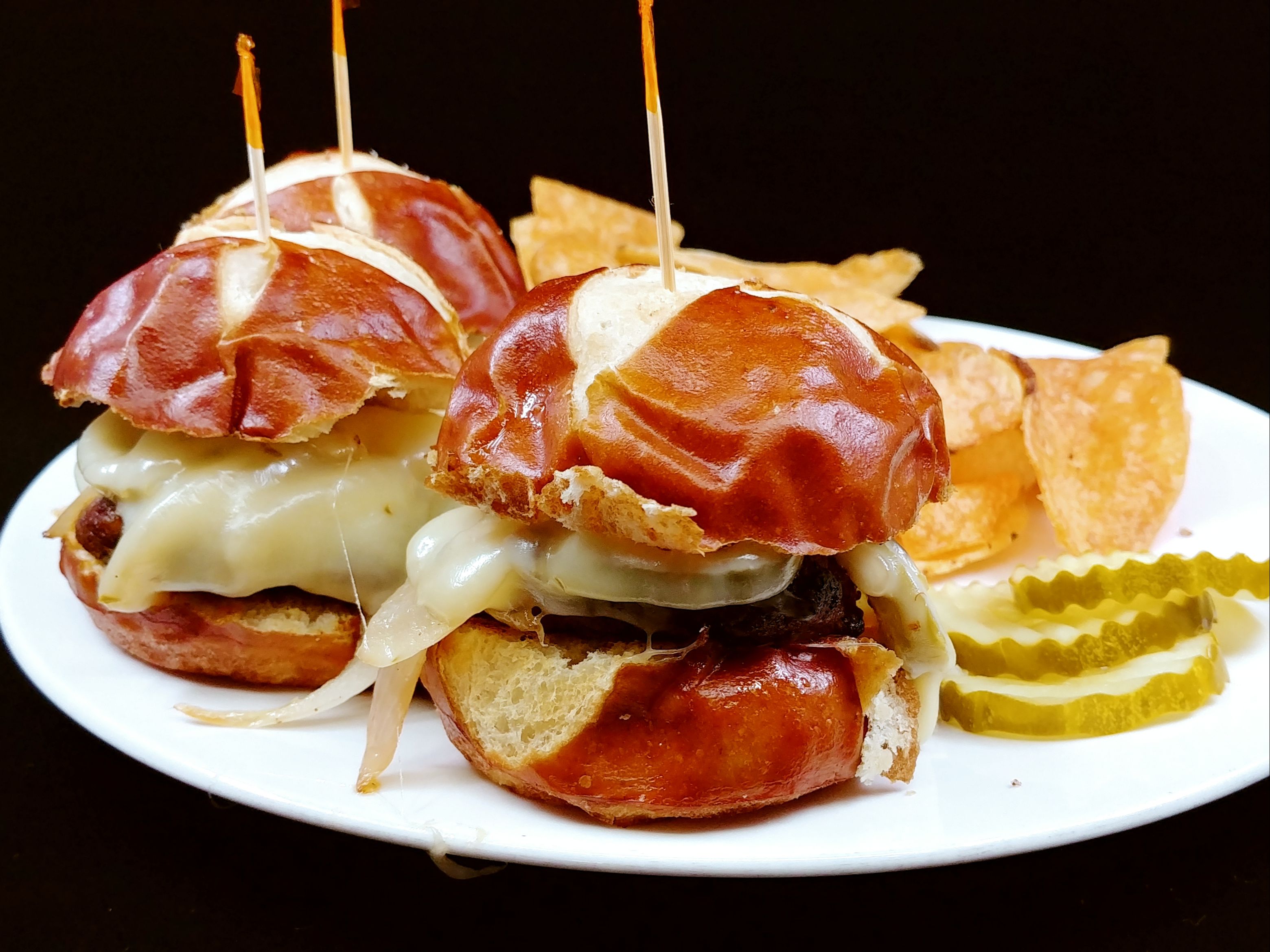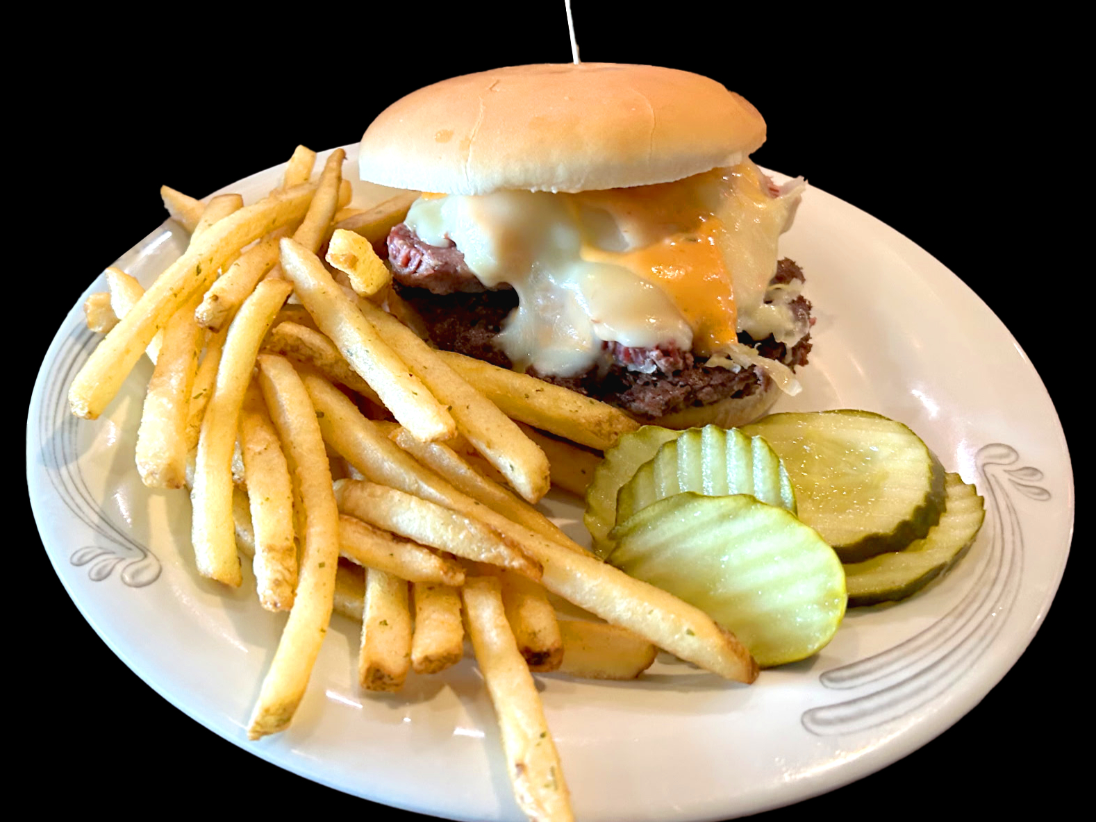1/2lb patty with sautéed onions and American cheese on grilled rye bread