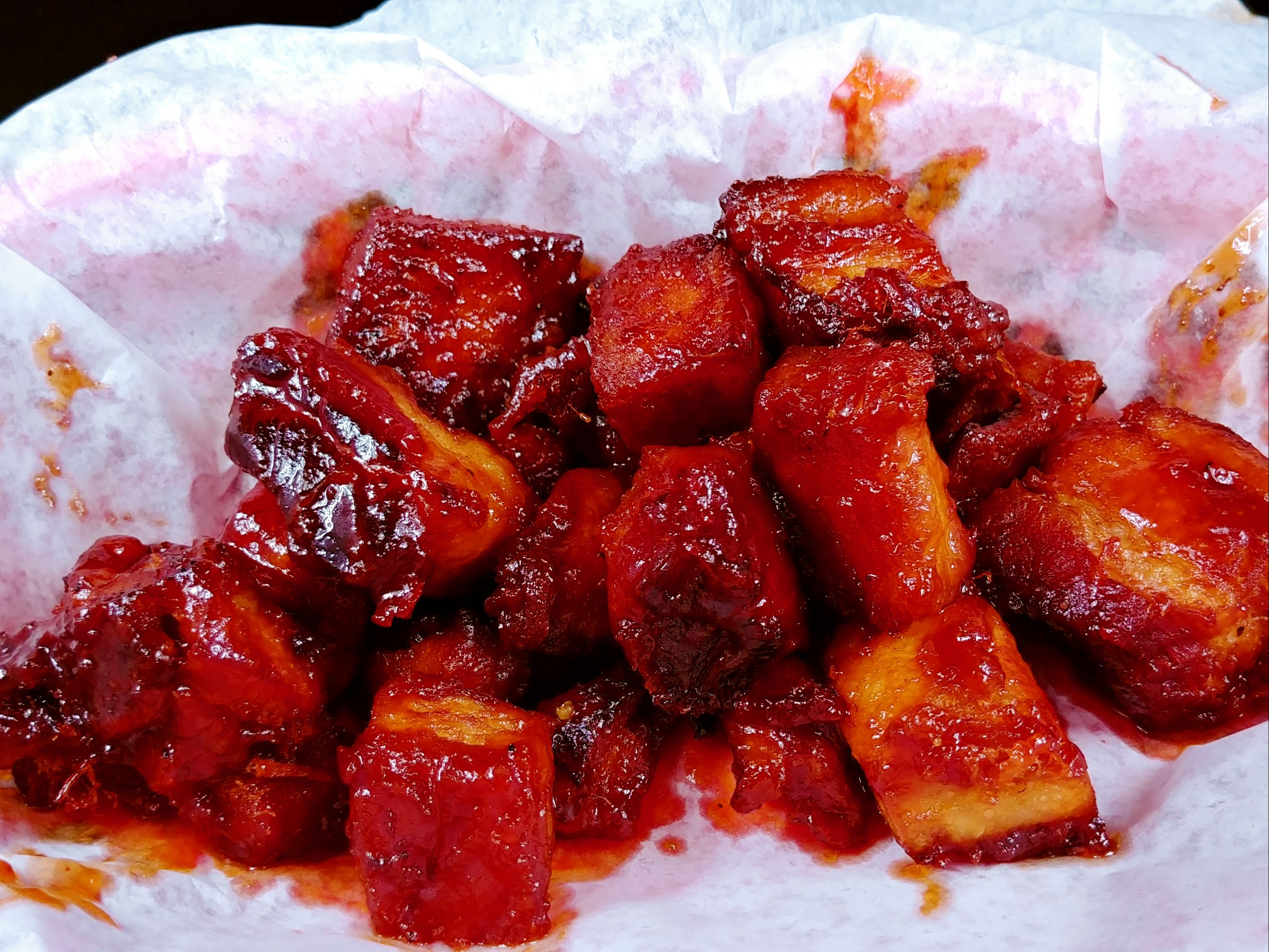 Tender cubed pork belly, lightly fried then tossed in BBQ sauce