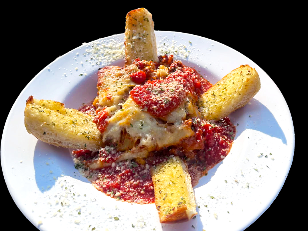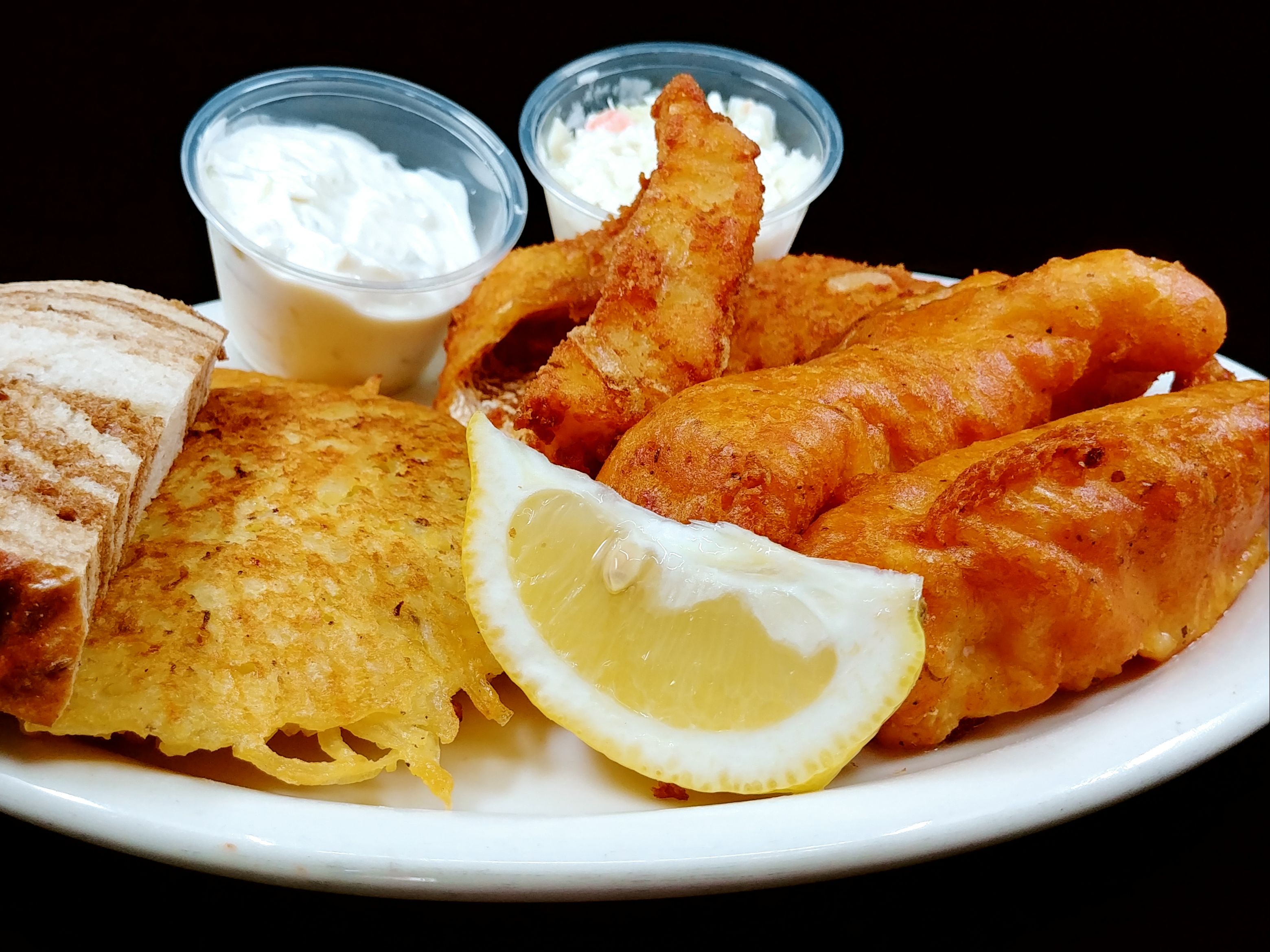 Crispy gyro meat on a toasted pita bread served with tomato, onion, & tzatziki sauce